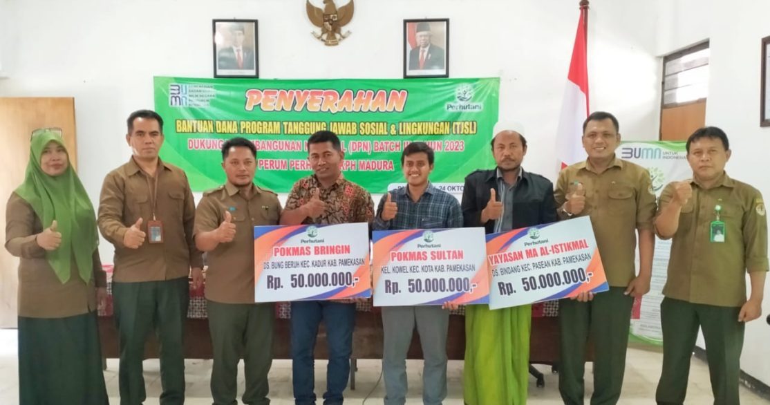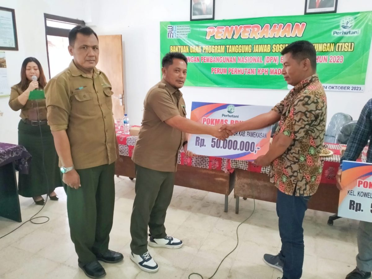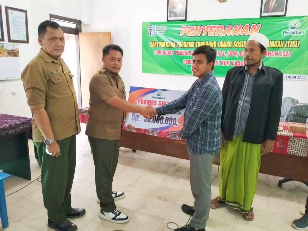 Kepala Perum Perhutani Divisi Regional (Divre) Jawa Timur Amas Wijaya melakukan kunjungan kerja ke kantor Perhutani KPH Madura guna melakukan penyerahan bantuan dana program Tanggung Jawab Sosial Dan Lingkungan (TJSL) Dukungan Pembangunan Nasional (DPN) Batch III Tahun 2023. sebesar 150 juta kepada tiga calon penerima dua diantaranya Kelompok Masyarakat (Pokmas) dan satu Yayasan dan dilanjutkan dengan melakukan pembinaan kepada segenap karyawan/ti KPH pada hari Selasa (24/10).