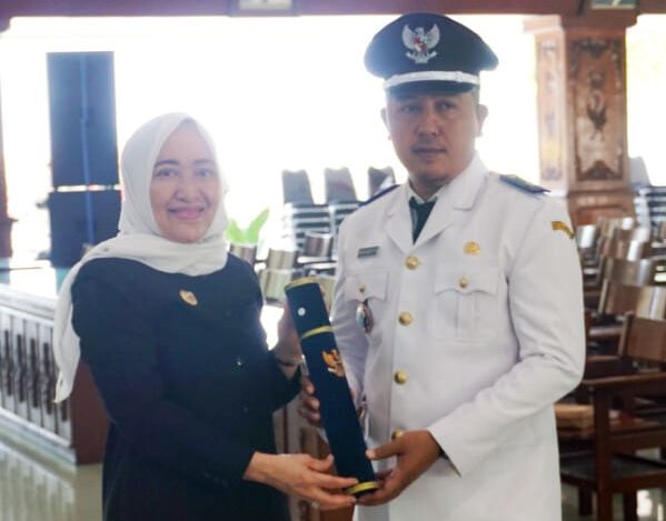 Bupati Bojonegoro Anna Mu’awanah melantik Amega Maha Putra sebagai Kepala Desa Pengganti Antar Waktu (PAW) Desa Prangi Kecamatan Pandangan. Acara pelantikan digelar di Pendopo Malowopati Pemkab Bojonegoro, Rabu (22/2/2023).