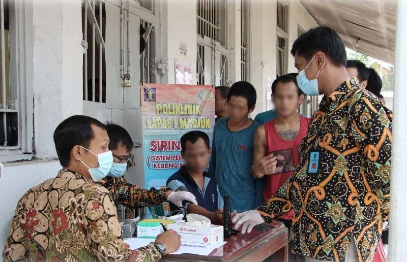 Petugas kesehatan Lapas Kelas I Madiun rutin melaksanakan pemeriksaan terhadap warga binaan pemasyarakatan (WBP). Sistem pemeriksaan keliling kesehatan (Siringkes) terhadap WBP ini dilakukan mulai dari penyakit ringan hingga berat agar kesehatan WBP terjaga.