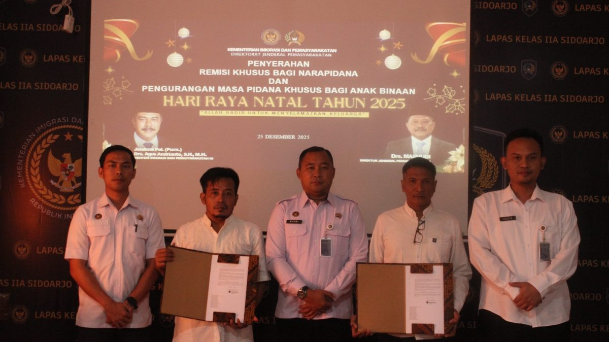 Lapas Kelas IIA Sidoarjo Berikan Remisi Khusus Natal 2025 kepada Warga Binaan