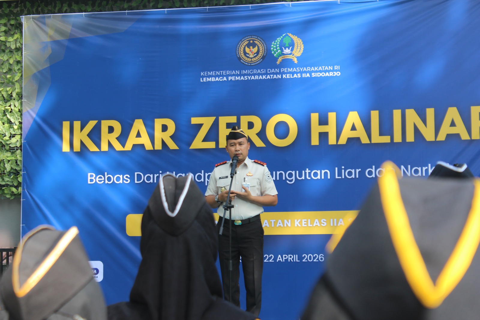 Lembaga Pemasyarakatan Kelas IIA Sidoarjo menggelar Apel Siaga Ikrar Zero Halinar (Handphone, Pungutan Liar (Pungli), dan Narkoba) sebagai bentuk komitmen tegas dalam menciptakan lingkungan pemasyarakatan yang bersih dari handphone, pungutan liar, dan penyalahgunaan narkoba, Rabu (22/4/2026). Kegiatan tersebut dilaksanakan pada Rabu pagi di halaman depan Lapas dan diikuti oleh seluruh jajaran pegawai.