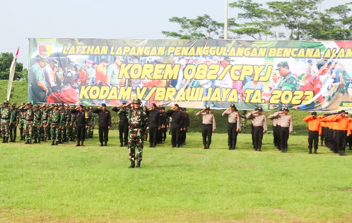 Latihan Lapangan Penanggulangan Bencana Alam (Gulbencal) yang berlangsung selama lima hari dari tanggal 4 sampai dengan 8 Desembet 2023 diwilayah Kodim 0813 Bojonegoro resmi ditutup oleh Komandan Korem (Danrem) 082 Citra Panca Yudha Jaya, Kolonel Inf Heri Rustandi, dilapangan Desa Padang Kecamatan Trucuk, Kabupaten Bojonegoro, Jum’at (8/12/2023).