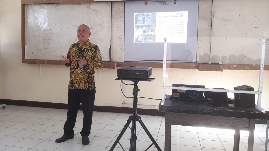 Pimpinan redaksi Guetilang.com Heintje Mandagie memaparkan materi tentang dasar-dasar jurnalistik bagi anggota Bhabinkamtibmas dalam menjalankan praktek jurnalisme warga.