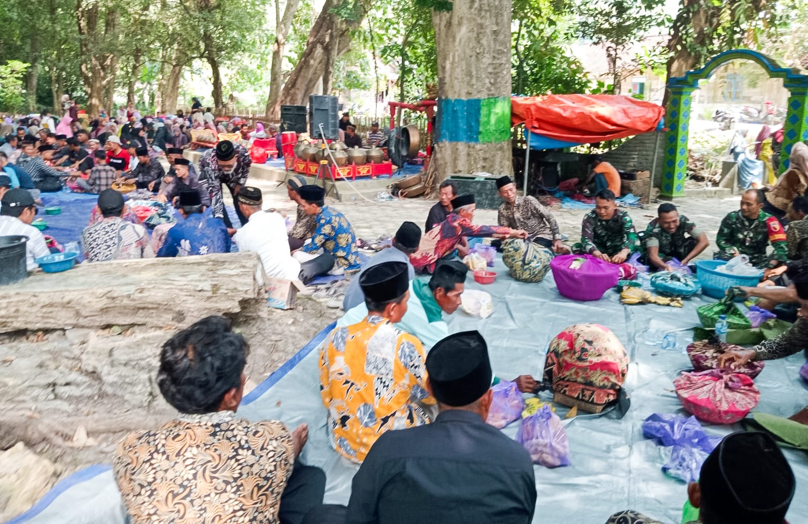 Jajaran Bintara Pembina Desa (Babinsa) Koramil 24/Temayang Kodim 0813 Bojonegoro Jawa Timur, turut mengikuti acara tradisi nyadran atau sedekah bumi di Dusun Kalimati Desa Papringan, Dusun Guyangan Desa Soko dan Desa Kedungsumber Kecamatan Temayang Kabupaten Bojonegoro, Jum’at (14/6/2024).