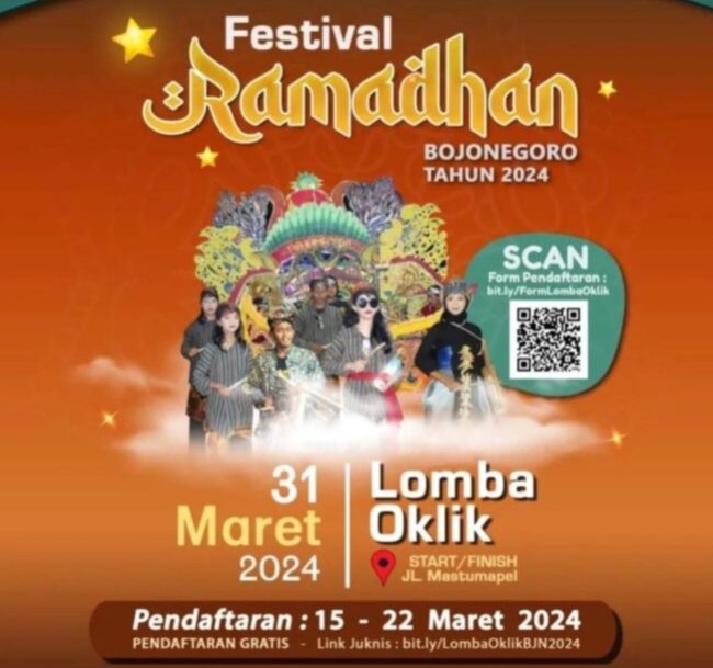 Sebagai upaya melestarikan nilai-nilai budaya tradisi dan religi, sekaligus dalam rangka memeriahkan Bulan Suci Ramadhan 1445 Hijriah, Pemerintah Kabupaten Bojonegoro melalui Dinas Kebudayaan dan Pariwisata (Disbudpar) menyelenggarakan kegiatan Lomba Oklik. Kegiatan untuk masyarakat Kabupaten Bojonegoro akan diselenggarakan Minggu, (31/3/2024) mendatang.