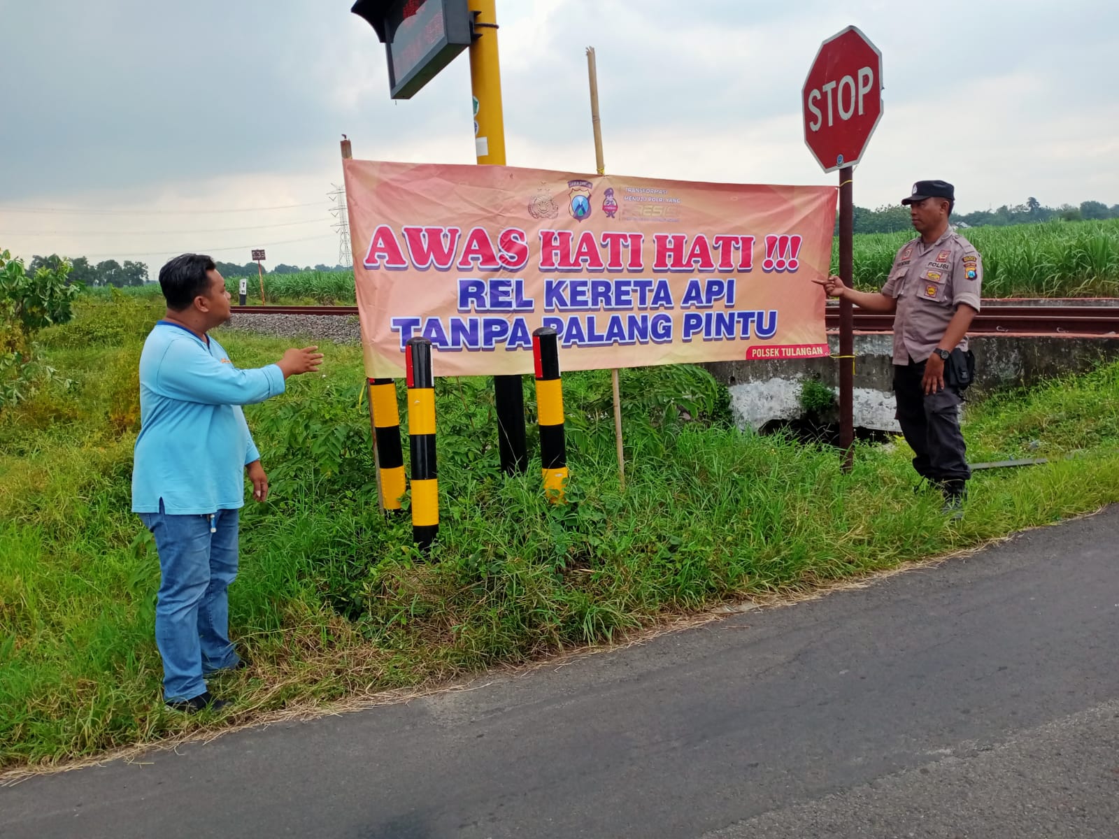 “Personel kami turunkan untuk siaga di perlintasan kereta api tak berpalang. Di awali memberikan himbauan-himbauan ke masyarakat. Sehingga masyarakat dan pengendara dapat berhati-hati saat melintas,” ujar Kapolsek Tulangan AKP A. Agung GPW, Sabtu (18/2/2023).