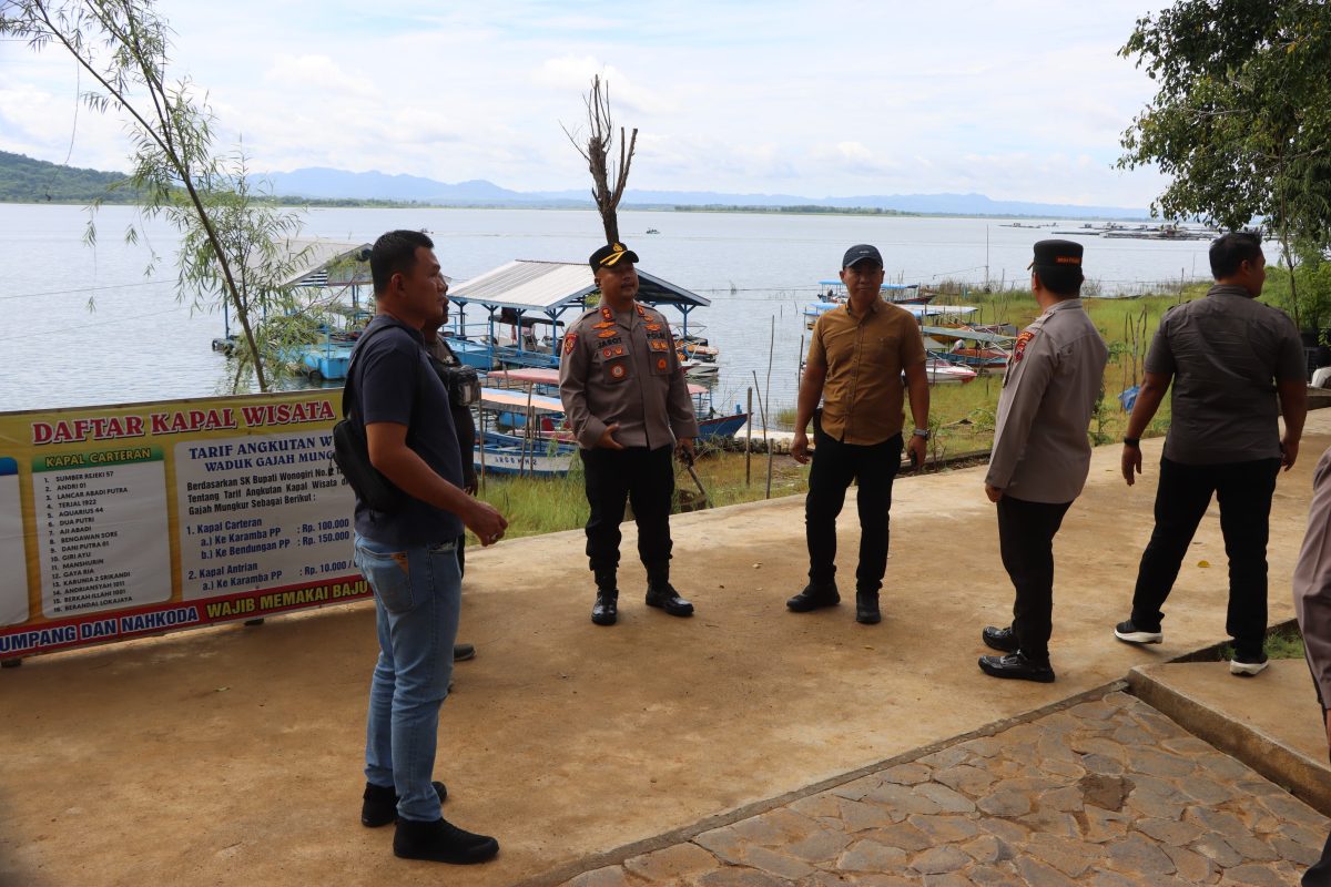 Kapolres Wonogiri AKBP Jarot Sungkowo, S.H., S.I.K., didampingi Wakapolres dan sejumlah PJU Polres Wonogiri mendatangi obyek wisata Waduk Gajah Mungkur. Selasa (28/1/2025).