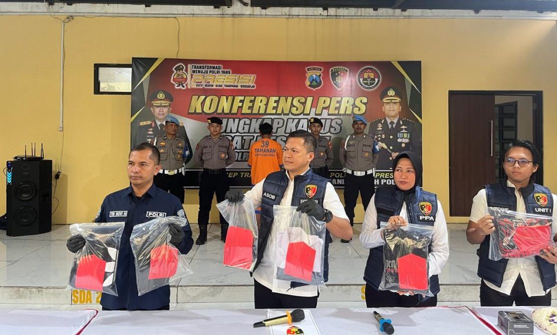 Kasat Reskrim Polresta Sidoarjo Kompol Agus Sobarnapraja, Senin (2/5/2024), memberikan keterangan pers terkait video viral aksi kekerasan fisik terhadap seorang anak yang terjadi di Lapangan Rusunawa, Desa Ngelom, Kecamatan Taman, Kabupaten Sidoarjo pada 15 Mei 2024 lalu.