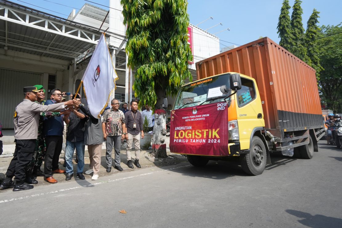 Secara resmi armada logistik diberangkatkan oleh Penjabat (Pj) Wali Kota Mojokerto Moh. Ali Kuncoro dari Gudang Logistik KPU di Jalan Mojopahit 466, Kota Mojokerto.