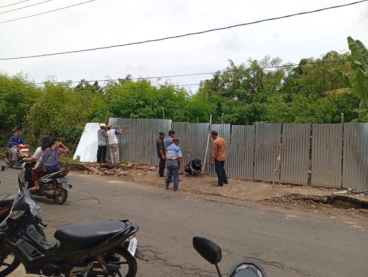 Lurah Tanjung Aman, Octa Manda Yanti S.STP MM, memimpin kegiatan memportal tempat pembuangan sampah di Lk. 5, Kelurahan Tanjung Aman, dengan menggunakan seng, Kamis (9/4/2026).