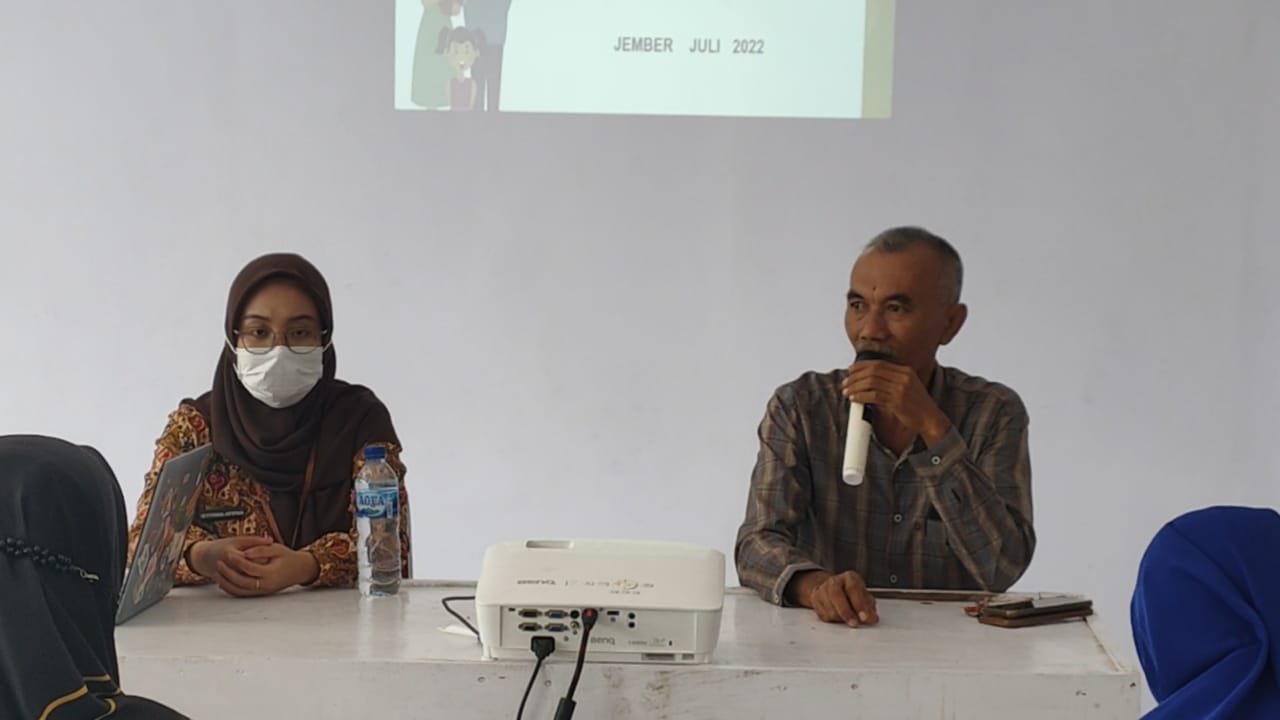 Mahasiswa KKN – BBM periode 66 Universitas Airlangga Surabaya (Unair) menggandeng satgas stunting Kabupaten Jember melakukan sosialisasi penanganan stunting sejak dini dan Hepatitis akut pada anak 20 warga di desa Lojejer kecamatan Wuluhan kabupaten Jember Sabtu, (23/7/2022).