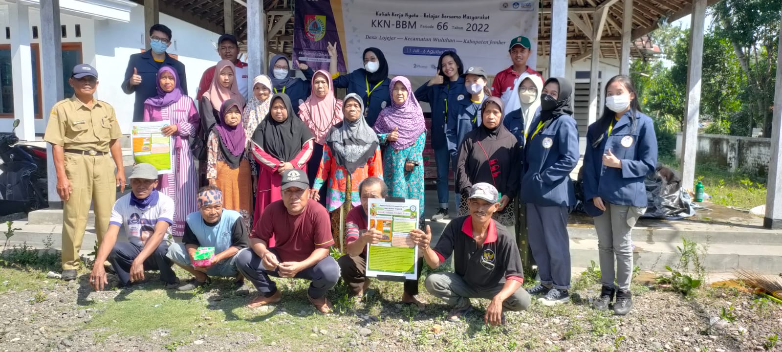 9 Mahasiswa KKN – BBM Periode 66 Universitas Airlangga Surabaya memberikan Penyuluhan pengunaan bahan organik sebagai bahan penggunaan kompos kepada Masyarakat di balai dusun Sulakdoro desa Lojejer kecamatan Wuluhan Kabupaten Jember, Kamis (21/7/2022).