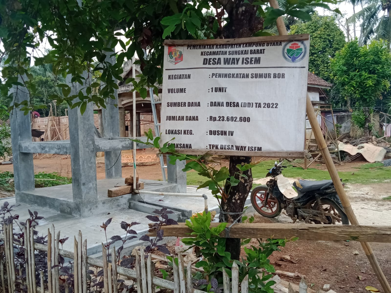 Pemerintah Desa ( Pemdes) Way Isem, Kecamatan Sungkai Barat, Kabupaten Lampung Utara, Manfaatkan Dana Desa ( DD) tahun 2022 dengan membuka badan jalan pertanian dan peningkatan sumur bor.