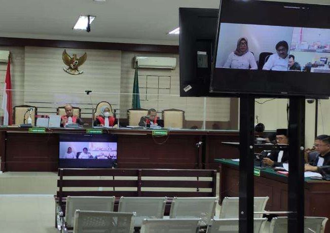 Korupsi Dana Alokasi Khusus (DAK) Dispendik Jatim tahun 2018, rugikan negara Rp8,2 miliar, secara daring dari Rutan Kejati Jatim yang terhubung dengan layar monitor di Ruang Candra, Kantor Pengadilan Tipikor Surabaya, Selasa (12/12/2023) lalu. (Red)
