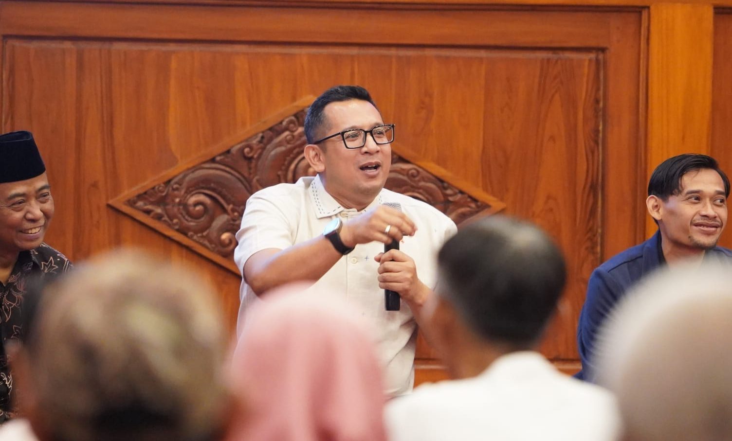 “Jangan pilih pemimpin karena duitnya, tapi pilih pemimpin karena gagasan, karena visinya, karena idenya, karena janji atau komitmennya membikin kebijakan-kebijakan keberlanjutan yang pro terhadap permasalahan yang ada di masyarakat,” kata Mas Pj.