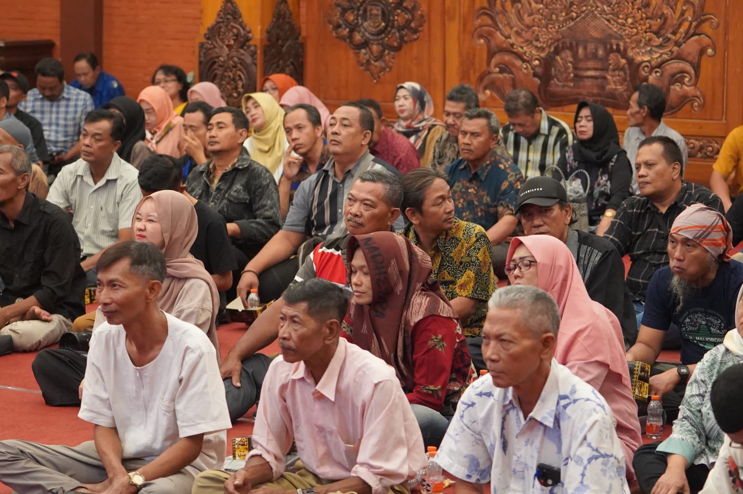Ratusan Tokoh Masyarakat Kota Mojokerto yang terdiri dari para Ketua RW dan RT saat mendengarkan arahan Sosialisasi Pilkada Daei Mas Pj. Ali Kuncoro