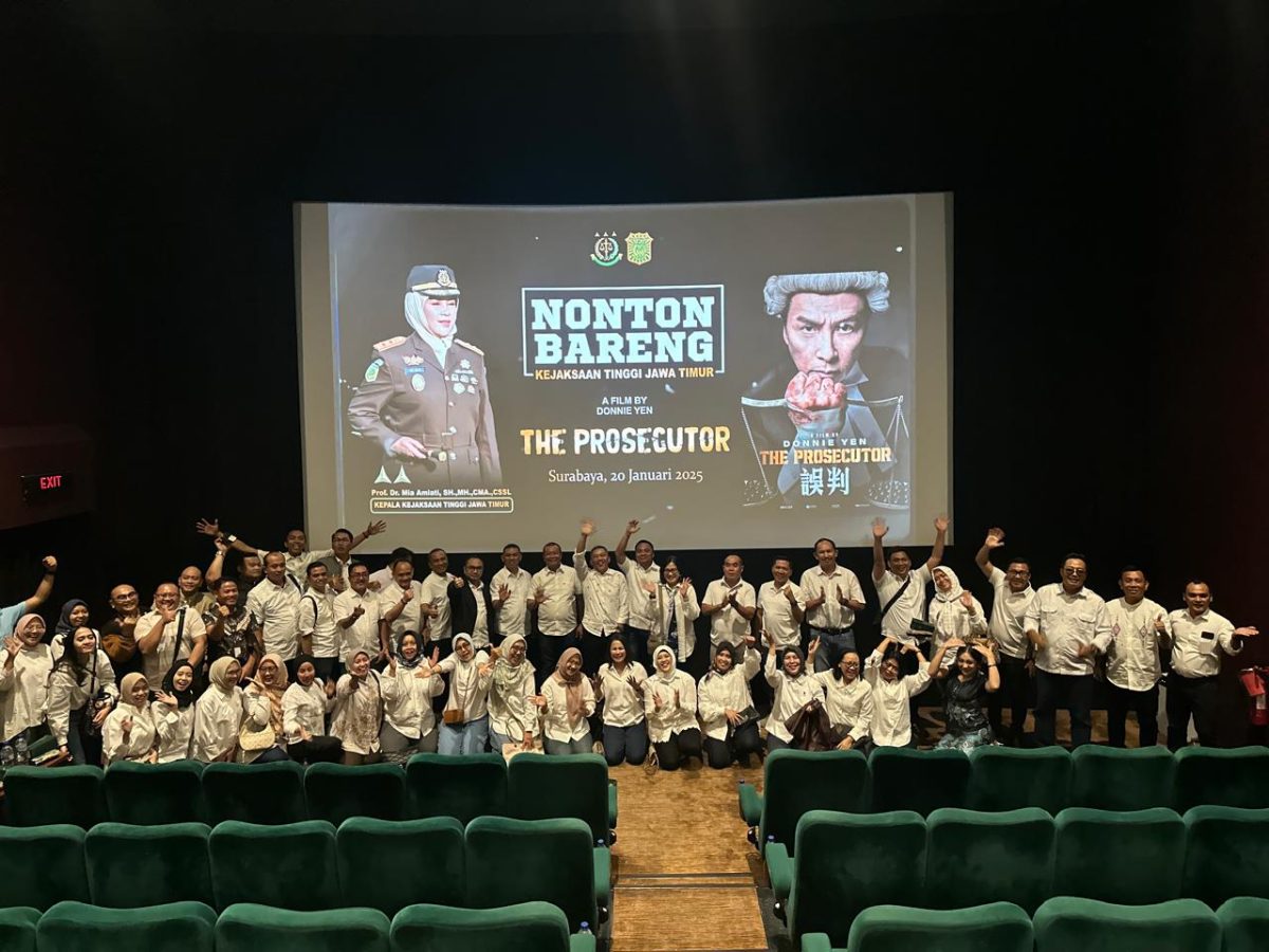 Dalam rangka memupuk rasa solidaritas dan soliditas antar Kajari se-Jawa Timur, Kajati Jatim Prof (HCUA) Dr. Mia Amiati, S.H., MH., CMA., CSSL., dengan didampingi oleh Wakajati dan para pejabat Utama Kejati Jatim mengajak para Kajari se-Jawa Timur untuk menonton film Bersama (Nobar) sebuah Film yang dapat mengedukasi para Jaksa dengan judul The Prosecutor. Minggu (20/1).