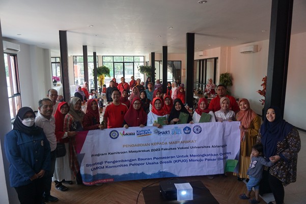 Tidak jarang pelaku UMKM menghadapi kegagalan dalam mengembangkan bisnisnya karena kesulitan menyesuaikan diri terhadap tantangan yang ada. Sebagai upaya untuk menjawab tantangan bisnis yang ada, Fakultas Vokasi Universitas Airlangga (Unair) berkolaborasi dengan Komunitas Pelopor Usaha Gresik (KPUG) menggelar acara pengabdian kepada masyarakat bertemakan “Strategi Pengembangan Bauran Pemasaran Untuk Meningkatkan Omzet UMKM Komunitas Pelopor Usaha Gresik (KPUG) Menuju Pasar Global”. Minggu, (27/08/2023).