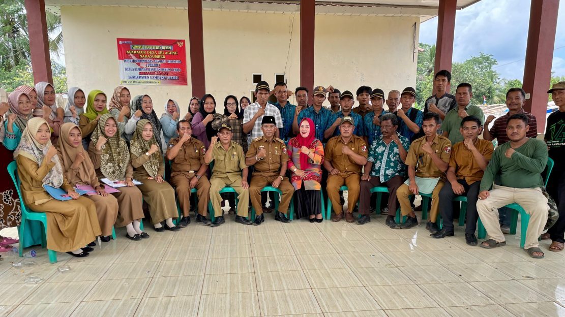 Kepala desa Ari Agung H. Amirudin. SH., mengatakan, kegiatan hari ini adalah penyerahan, penetapan SK dan pembinaan aparatur desa sesuai dengan foksi dan jabatan masing-masing.tetangnya.