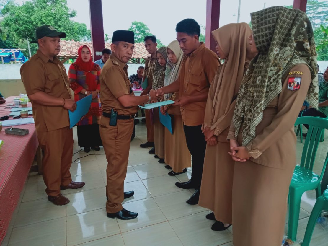 Kepala desa Ari Agung H. Amirudin. SH., mengatakan, kegiatan hari ini adalah penyerahan, penetapan SK dan pembinaan aparatur desa sesuai dengan foksi dan jabatan masing-masing.tetangnya.