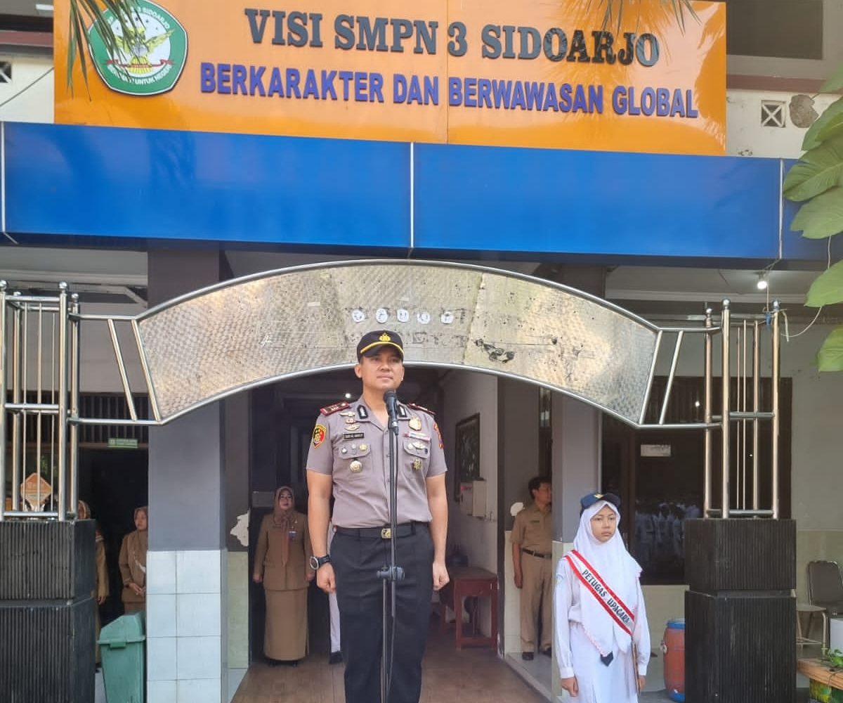 Upaya ini seperti dilakukan Kapolsek Sidoarjo Kota AKP I Gusti AG Ananta P, Senin (25/9/2023), dengan menjadi inspektur upacara (Irup) bendera di SMPN 3 Sidoarjo.