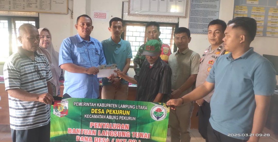 Pemerintah Desa Pekurun, Kecamatan Abung Pekurun, Kabupaten Lampung Utara melaksanakan penyaluran Bantuan Langsung Tunai Dana Desa (BLT-DD) Truwulan pertama untuk bulan Januari, Februari dan maret, Ta 2025 kepada 25 Keluarga Penerima Manfaat (KPM). Jum’at 21 Maret 2025.