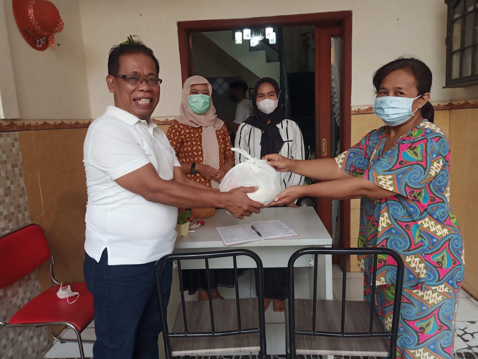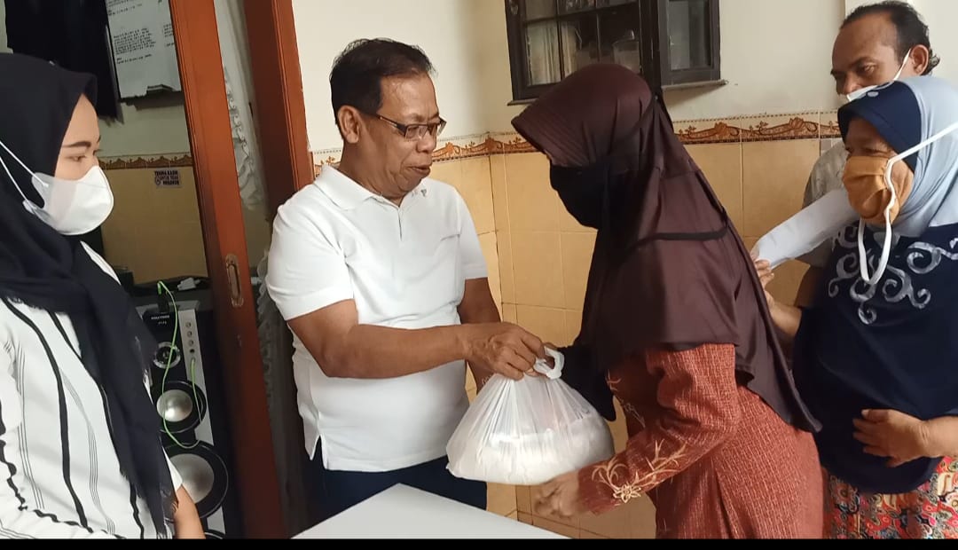 Pengacara Dermawan Mr. Alex’s Askohar, SH MH, saat bagi bagi Zakat Fitrah kepada para Lansia yang kurang mampu.