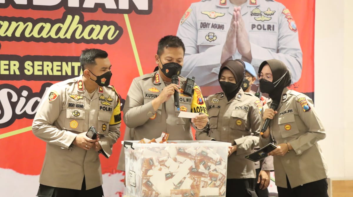 Seperti disampaikan Kapolresta Sidoarjo Kombes Pol. Kusumo Wahyu Bintoro, saat meninjau vaksinasi dan pengundian vaksinasi berkah Ramadan berhadiah umroh dan sepeda MTB, bertempat di Transmart Sidoarjo, Sabtu (30/4/2022) sore.