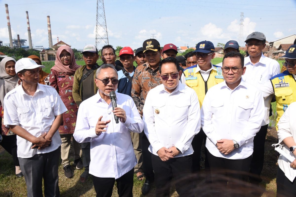 Menteri Koordinator/Mengko Bidang Pangan RI Zulkifli Hasan melakukan Kunjungan Kerja/Kunker ke Kabupaten Sidoarjo, Selasa, (7/1). Ia datang menemui petani Sidoarjo di Desa Mlirip Rowo Kecamatan Tarik. Sebelumnya Zulkifli Hasan menyempatkan diri melihat perbaikan tanggul Dam Rolak Songo sisi Timur yang longsor. Kedatangan Zulkifli Hasan bersama Menteri Perdagangan RI Budi Santoso siang tadi didampingi Pj Gubernur Jawa TimurAdhy Karyono. Rombongan menteri disambut Plt. Bupati Sidoarjo H. Subandi bersama Kapolresta Sidoarjo Kombes Pol Christian Tobing.