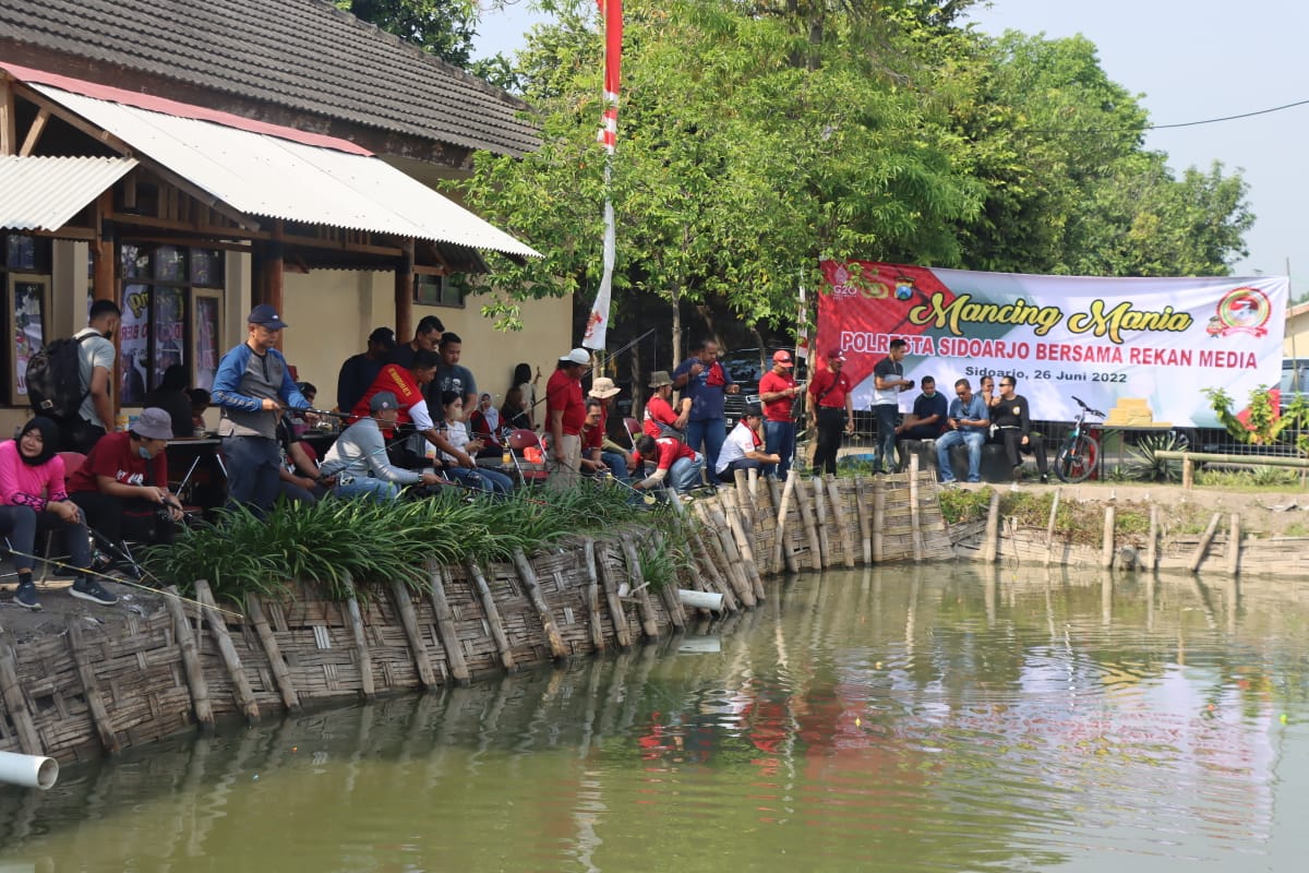 Memeriahkan Hari Bhayangkara ke-76, Polresta Sidoarjo mengadakan Mancing Mania Bersama rekan media. Bertempat di Porong, Sidoarjo, Minggu, (26/6/2022).