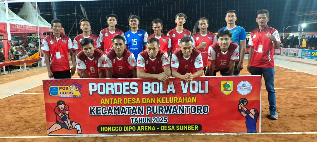 Turnamen Bola Voli Bupati Cup Pada Sabtu (20-09-2025) di Lapangan Volly Honggo Dipo Desa Sumber Resmi Berakhir. Turnamen ini digelar dalam rangka Peringatan Haornas Wonogiri yang di ikuti peserta Bola Voli 13 Desa dan 2 Kelurahan yang ada di Kecamatan Purwantoro Kabupaten Wonogiri Jawa Tengah. Dengan rincian 15 tim bola voli putra dan 11 tim bola voli putri. Giat ini merupakan agenda rutin tahunan yang di adakan oleh Desa-desa di wilayah Kecamatan Purwantoro.