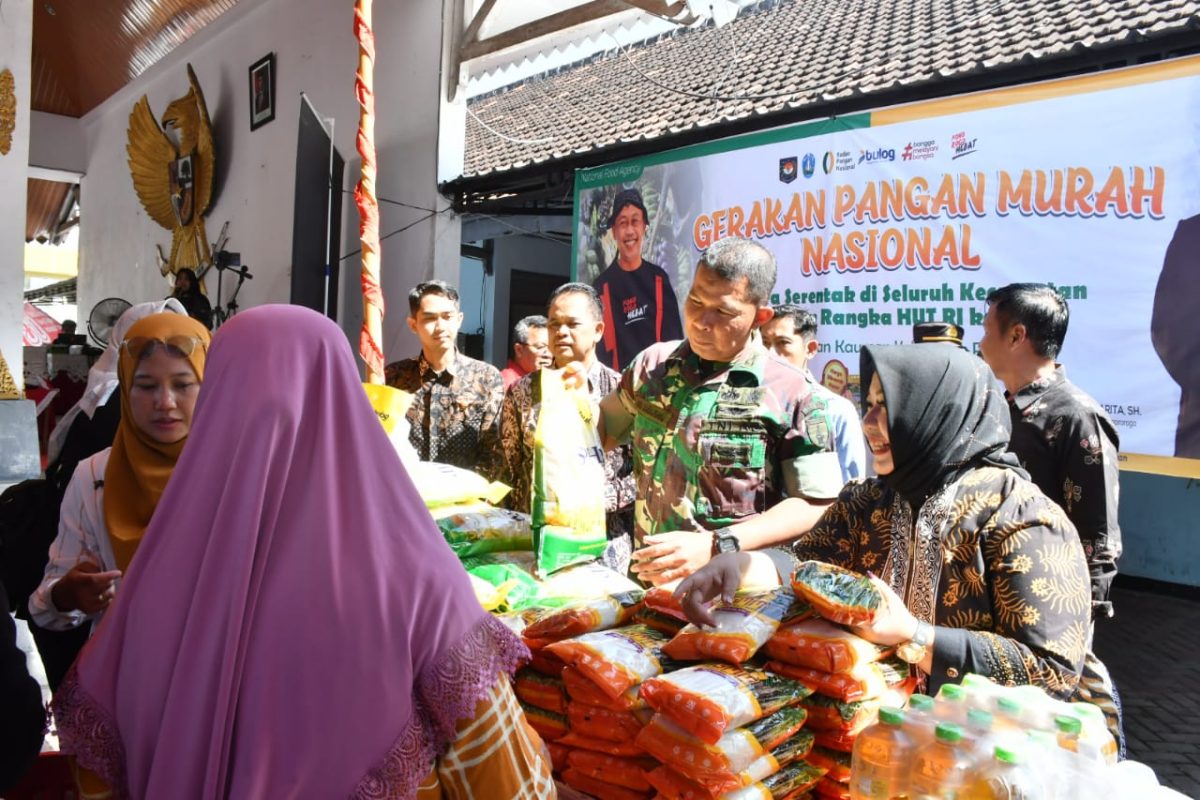 Kodim 0802/Ponorogo tadi pagi menggelar kegiatan Gerakan Pangan Murah (GPM) Nasional secara serentak di seluruh kecamatan se Kabupaten Ponorogo, Sabtu (30/08/2025).