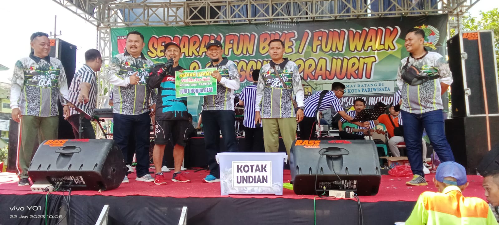 Minggu Pagi, (22/01/2023) Kodim 0801/Pacitan menggelar semarak Fun Bike dan Fun Walk serta panggung Prajurit, yang diikuti oleh ratusan peserta baik dari TNI, Polri, Forkopimda, serta seluruh elemen masyarakat yang ada di Kabupaten Pacitan.