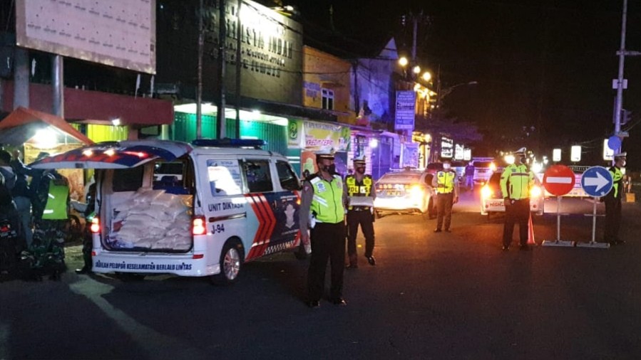 Mobil Operasional Polisi Lalu Lintas Kepolisian Resort Jember pada Minggu (11/07/2021) malam, Patroli keliling menyisir warga terdampak Pandemi Covid-19.