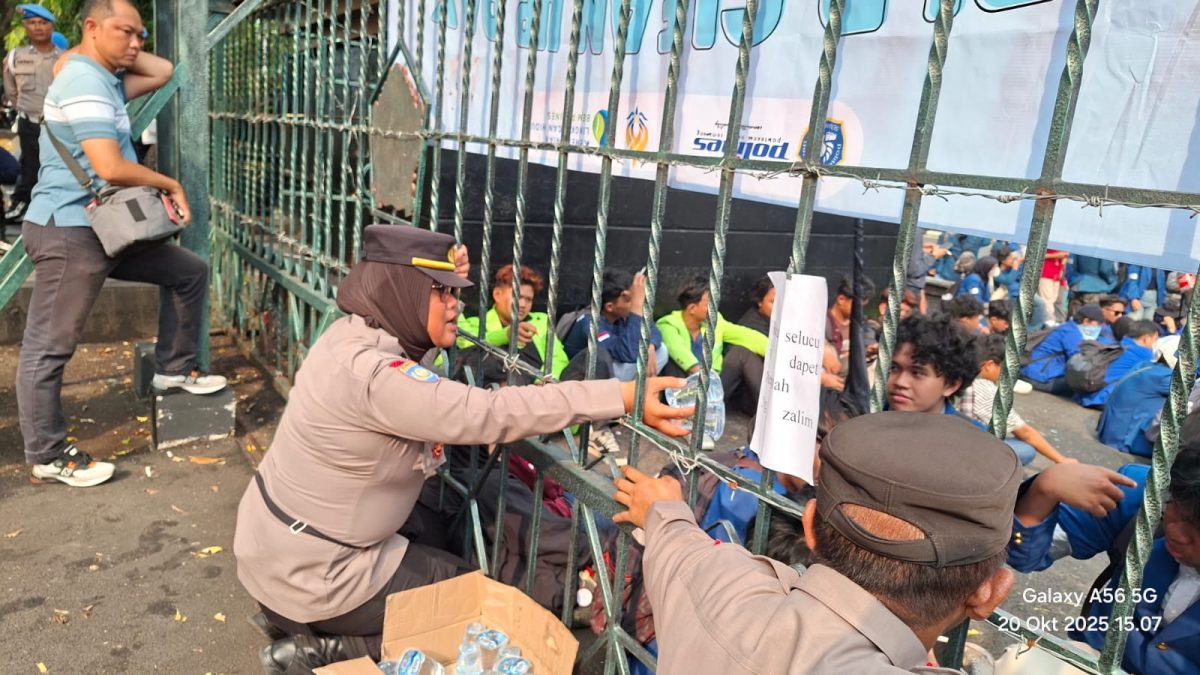 Momen humanis juga tampak ketika Polwan negosiator berinteraksi hangat dengan beberapa pengunjuk rasa dari balik pintu gerbang. Di tengah cuaca yang terik, petugas bahkan membagikan air mineral kepada para pengunjuk rasa agar tidak dehidrasi saat berorasi di bawah terik matahari.