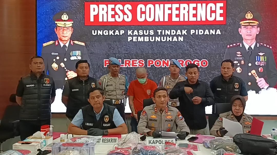 Kapolres Ponorogo, AKBP Andin Wisnu Sudibyo, S.I.K, pada Conference Pers ungkap kasus pembunuhan yang bertempat di Mapolres Ponorogo pada Kamis (14/8/2025) mengatakan, bahwa pengungkapan tindak pidana pembunuhan sebagaimana dimaksud dalam Pasal 338 KUHP, berdasarkan LPH Nomor 12 – VIII Tahun 2025, Tanggal 12 Agustus 2025.