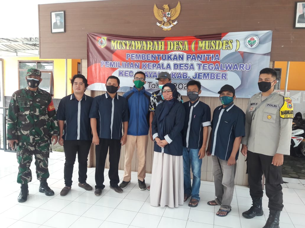 Pada pukul 10.00 WIB, di aula kantor desa Tegalwaru Berjalan Sukses.Pembukaan rapat pembentukan panitia pelaksana Pilkades pada tahun 2021/2026. Dengan Landasan Hukum UU NOMOR 6 TAHUN 2014 (Pasal 31-39) PP 43 TAHUN 2014 . PP 47 TAHUN 2015. PERMENDAGRI 112 TAHUN 2014.PERMENDAGRI 72 TAHUN 2020.SE MENDAGRI NOMOR 141/6698/SJ dan PERATURAN BUPATI JEMBER TAHUN 2021.TENTANG PEDOMAN PELAKSANAAN PEMILIHAN KEPALA DESA SERENTAK DAN ANTAR WAKTU Di kabupaten Jember.