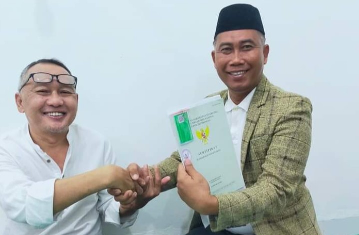 Serah terima kepengurusan ketua masjid Alfhath dari pengurus lama M. Faqih Fahroji MAg., secara simbolis bersama penyerahan sertifikat masjid Alfhath.
