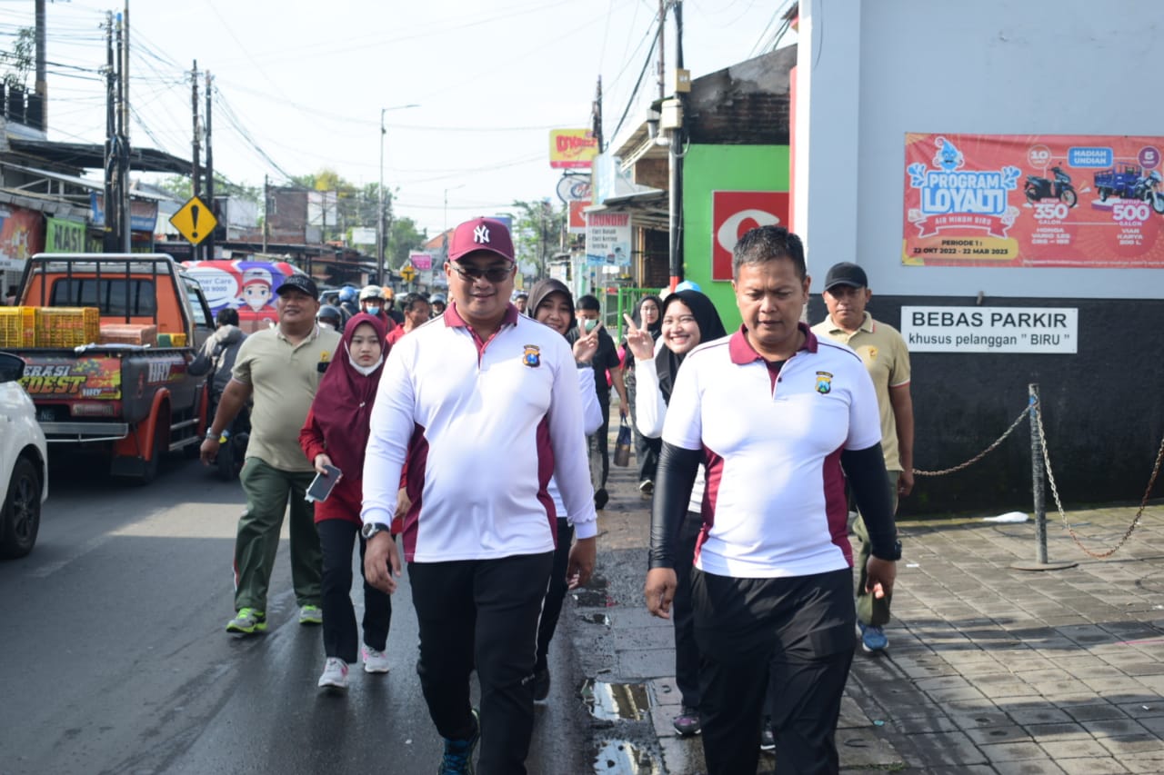 Sambut akhir pekan, Polresta Sidoarjo bersama Polsek jajaran rayon utara dan Forkopimka Sedati, melaksanakan olahraga bersama dengan jalan kaki ke perkampungan di kawasan Betro, Sedati, Sidoarjo, Jumat (10/2/2023) pagi.