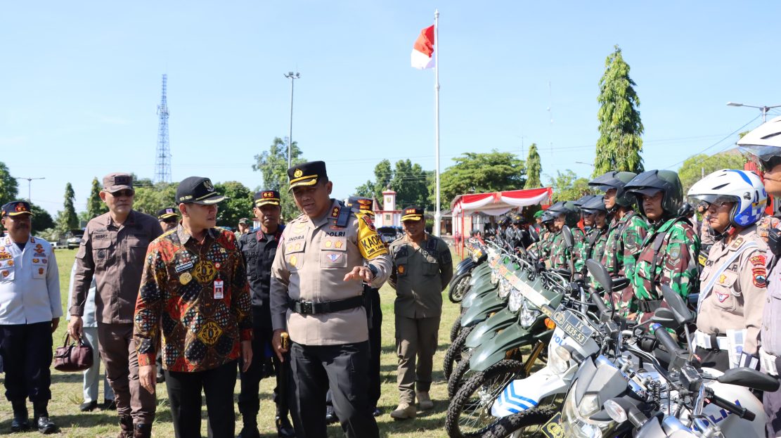 Selesai apel gelar pasukan, Kapolres beserta tamu undangan melaksanakan pemeriksaan ranmor dinas yang akan digunakan untuk mendukung pelaksanaan Ops Ketupat Candi 2024. (Marsudi)