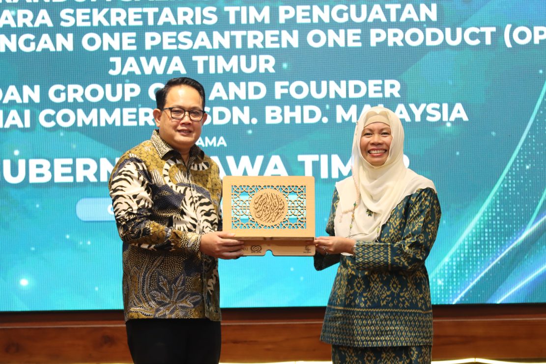 asca kerja sama antara Pemprov Jatim dengan Islamic Development Bank (IsDB) pada 8 Januari 2024 di Jeddah, Arab Saudi dilakukan, kini dilanjutkan dengan melakukan penandatanganan Memorandum Saling Pengertian (MSP), antara Tim Penguatan dan Pengembangan One Pesantren One Product (OPOP) Jatim dengan agen utama IsDB, yakni Group CEO and Founder Serunai Commerce SDN BHD Malaysia, di Gedung Negara Grahadi, Surabaya, Senin (22/1/2024) malam.