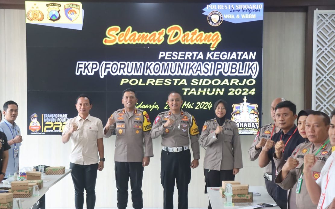 Polresta Sidoarjo menggelar forum komunikasi publik dengan melibatkan sejumlah elemen masyarakat, mahasiswa dan kelompok disabilitas, Selasa (21/5/2024), sebagai langkah optimalisasi layanan publik di lingkup Polresta Sidoarjo.