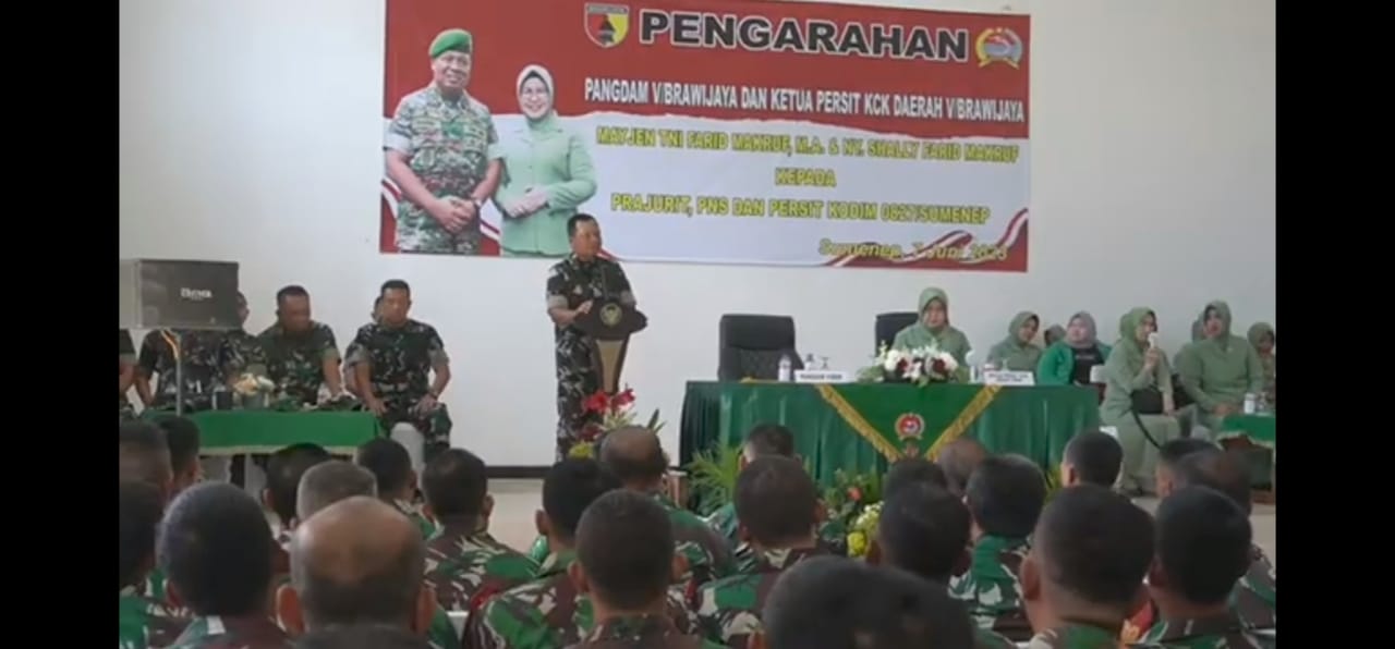 Sementara itu Dandim 0837/Sumenep Czi Donny Pramudya Mahardi, SE,MSI, menyampaikan ucapan terimakasi kepada Pangdam V/Brawijaya yang telah berkunjung ke Kodim Sumenep untuk memberi arahan kepada prajurit PNS dan Persit.