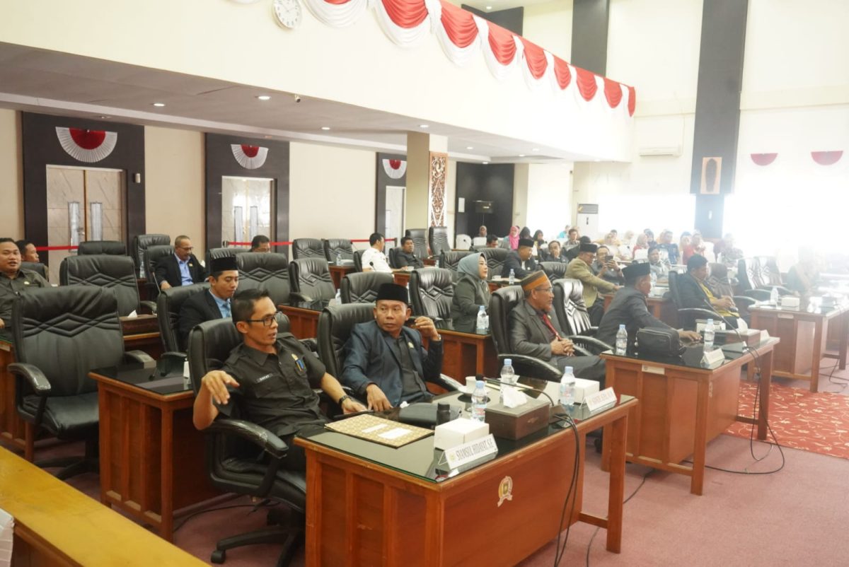 Sekretaris Daerah Kabupaten Sumbawa, Dr. H. Budi Prasetyo, S.Sos., M.AP., hadiri Rapat Paripurna Penyampaian Pandangan Umum Fraksi-fraksi DPRD Kabupaten Sumbawa terhadap 2 Rancangan Peraturan Daerah dari Pemerintah Daerah Kabupaten Sumbawa Tahun 2025. Rapat ini berlangsung di ruang Rapat Paripurna DPRD Kabupaten Sumbawa, Kamis, (21/8/2025). Hadir juga Forkopimda Kabupaten Sumbawa, OPD terkait, serta para anggota DPRD Kabupaten Sumbawa.