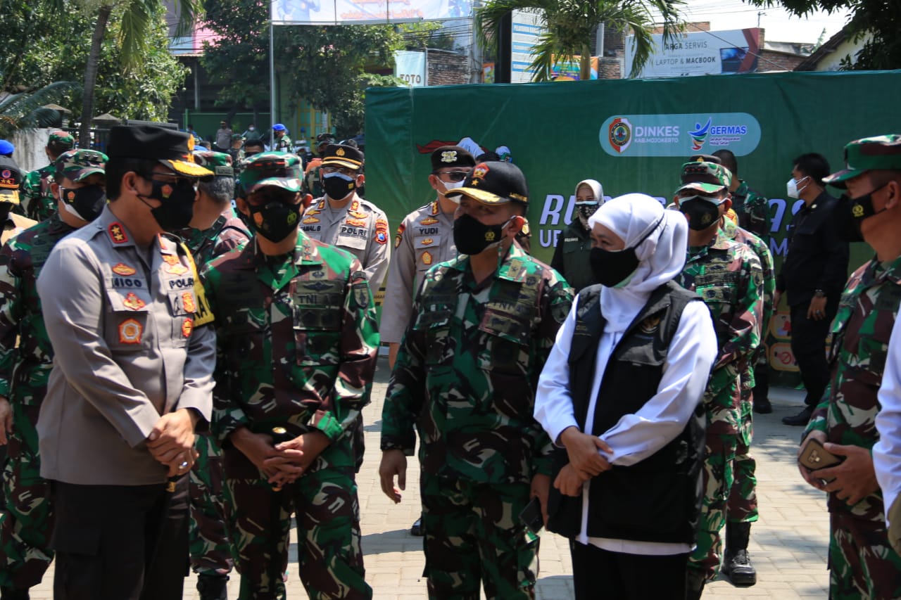 Gubernur Jatim Khofifah Indar Parawansa, Pangdam V Brawijaya Mayjend TNI Suharyanto, Kapolda Jatim Irjen Pol Nico Afinta bersama Pejabat Utama Polda Jatim, dan Pejabat Utama Kodam V Brawijaya mendampingi kunjungan Panglima TNI Marsekal Hadi Tjahjanto, serta Kabaharkam Polri Komjen Pol Arief Sulistyanto melakukan pengecekan disejumlah Puskesmas di Jatim.