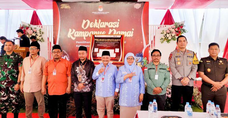Namun, dalam deklarasi kampanye damai tersebut hanya dihadiri oleh paslon nomor urut 2, Karna Suswandi-Khoirani (Karunia). Sedangkan paslon nomor urut 1 Yusuf Rio Wahyu Prayogo-Ulfiyah (Patenang) diwakilkan kepada ketua dan sekretaris tim pemenangan, Abdur Rachman dan Johantono.
