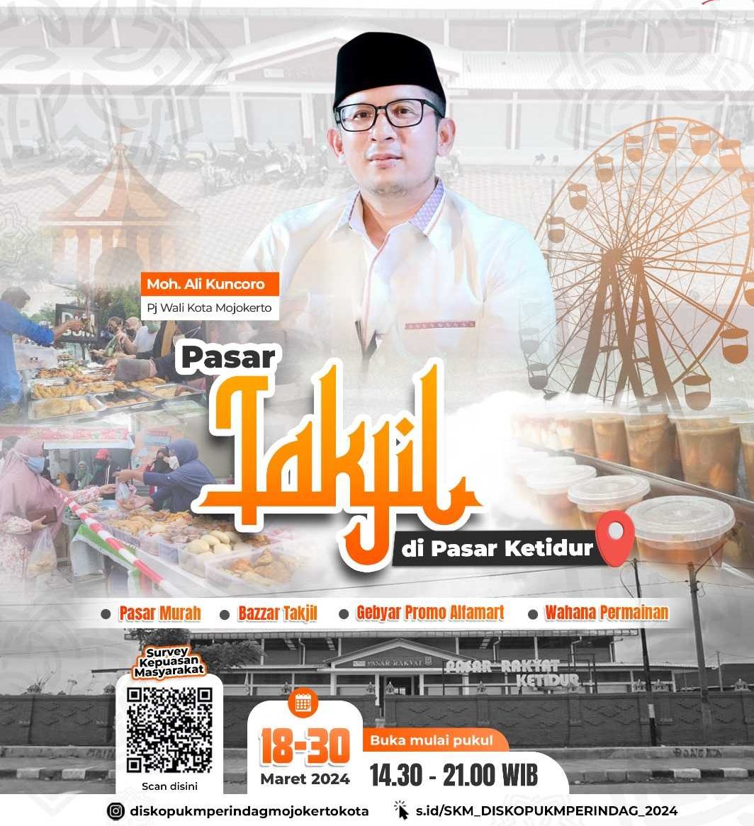 Penjabat (Pj) Wali Kota Mojokerto, Moh. Ali Kuncoro menuturkan pasar takjil ini digelar untuk memfasilitasi pemasaran dan promosi para pelaku UMKM Kota Mojokerto khususnya makanan dan minuman.