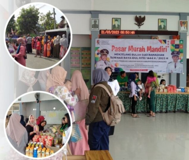 Dalam rangka menyambut bulan suci Ramadhan dan Hari Raya Idhul Fitri 1444 H, Pemkab Bojonegoro melalui Dinas Perdagangan, Koperasi dan Usaha Mikro kembali menyelenggarakan pasar murah mandiri. Kali ini pasar murah dilakukan di Balai Desa Pesen Kecamatan Kanor, Selasa (21/3/2023). Warga menyambut gembira pasar murah ini.