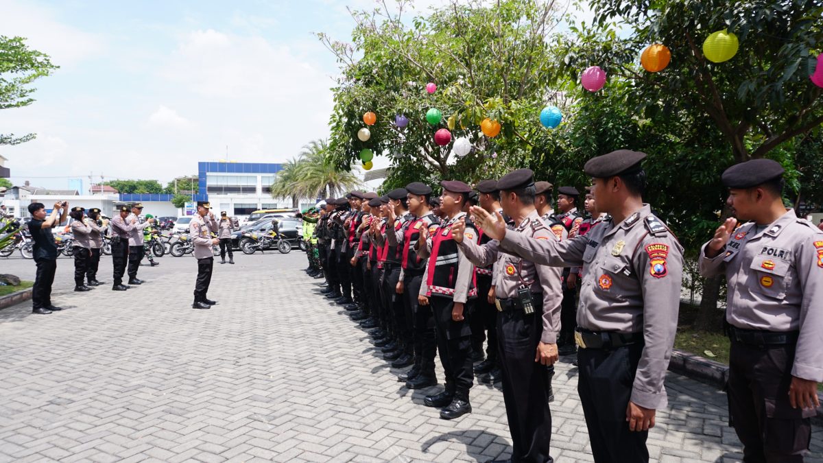 Kapolresta Sidoarjo Kombes. Pol. Christian Tobing usai memimpin apel, melakukan pengecekan kesiapan serta kekuatan personel. Guna memastikan kesiapan dalam menghadapi segala potensi gangguan keamanan jelang pelantikan Presiden.