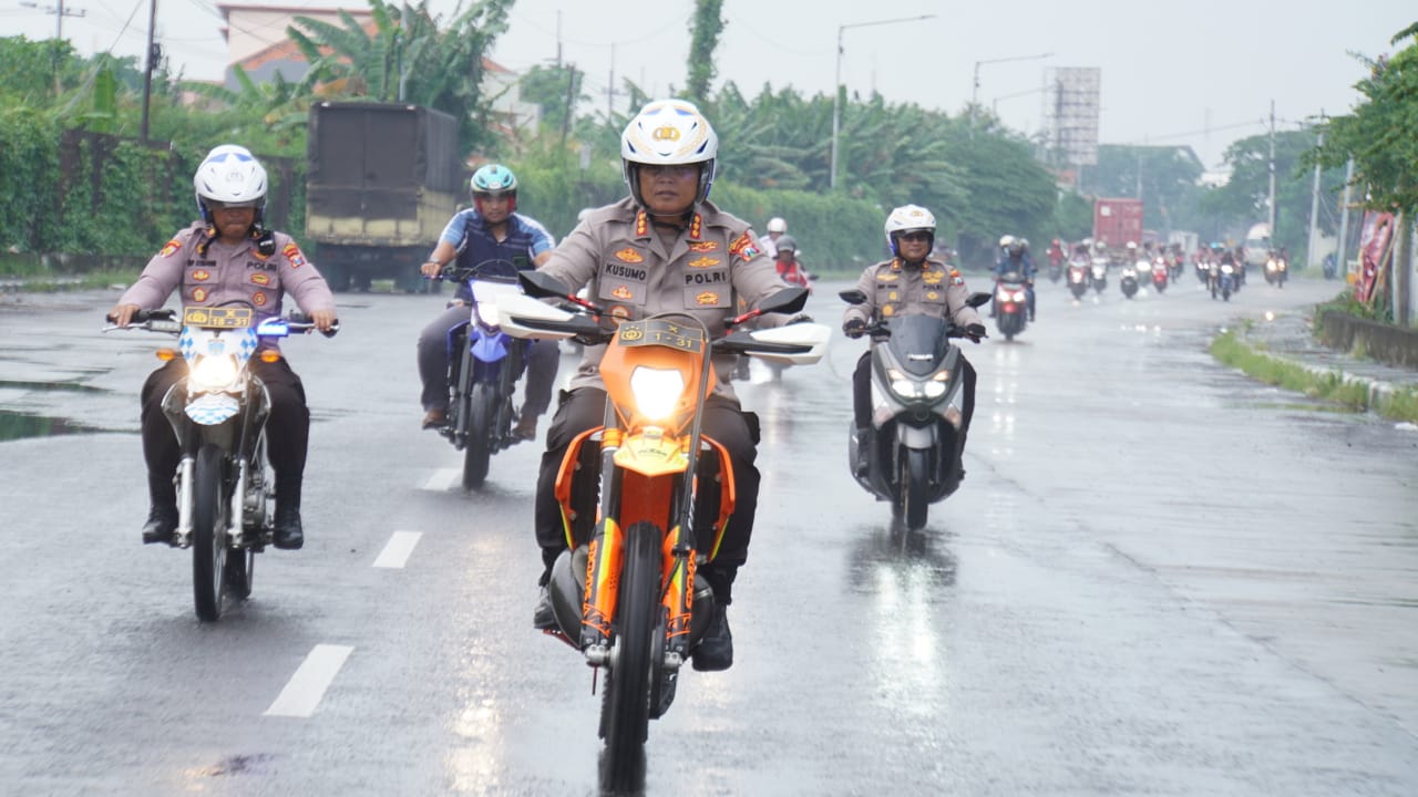 Patroli Kamtibmas Berkendara Motor Sambil Berbagi Pada Masyarakat Sidoarjo